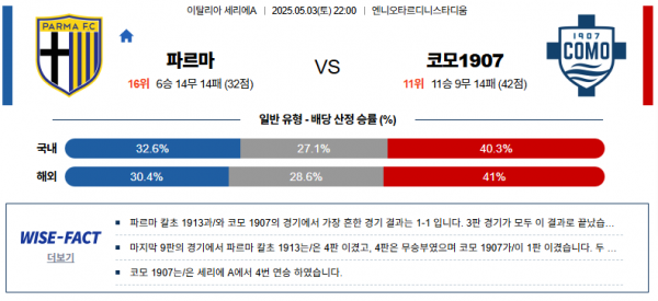 5월 3일 세리에A 파르마 vs 코모1907