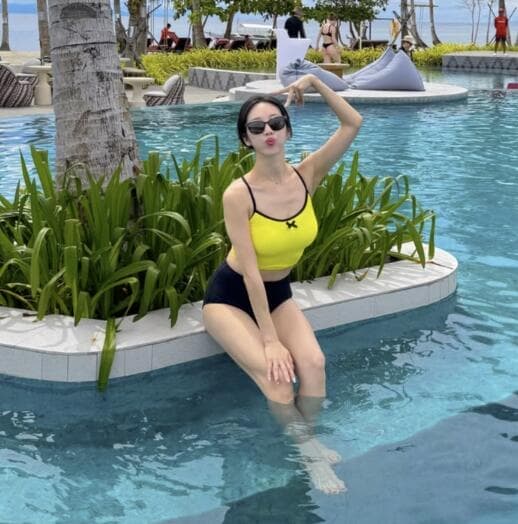 사진 속 이미래는 해외 휴양지로 보이는 리조트 수영장에서 비키니를 입고 포즈를 취하고 있는 모습이다. 맑은 날씨와 잘 어울리는 쨍한 색감의 상의와 길쭉한 각선미가 돋보이는 팬츠를 선택해 메력을 뽐냈다.