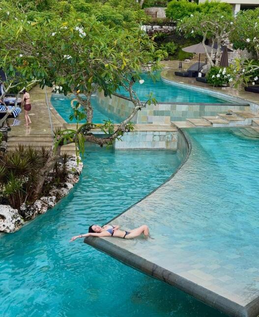 공개된 사진 속 이주연은 인도네시아 발리의 이국적인 풍경을 배경으로 여유로운 휴가를 만끽하고 있다.