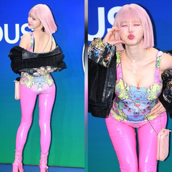 이날 DJ소다는 한겨울 추위가 체감되는 날씨에도 불구하고 비키니 톱에 재킷을 걸친 파격적인 패션으로 포토월에 섰다. 화려한 컬러의 스타일링과 당당한 포즈는 패션위크 현장의 분위기를 단숨에 바꿔놓았다. 노출은 분명했지만, 계산된 연출보다는 ‘DJ소다다운’ 확신이 먼저 읽혔다.
