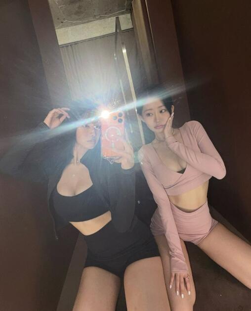 나띠는 블랙 크롭톱과 숏 팬츠를 매치해 군살 없는 복근과 각선미를 드러냈고, 쥴리는 핑크 톤의 크롭 상의와 미니스커트 스타일로 발랄한 매력을 더했다. 두 사람 모두 자연스러운 포즈와 브이(V) 제스처로 장난기 넘치는 분위기를 연출했다.