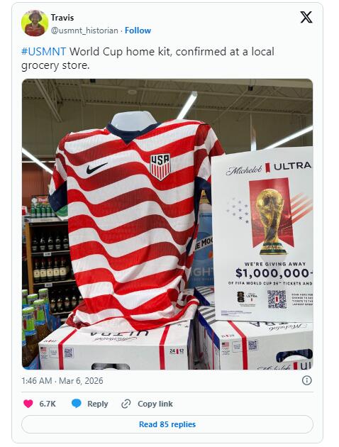 USMNT가 2026 FIFA 월드컵에서 착용할 유니폼이 우연히 한 마트에서 유출되면서 큰 주목을 받았다. 이 마트에서 공개된 유니폼 디자인은 2026 월드컵에서 미국이 입을 유니폼에 대한 중요한 정보를 담고 있었다.