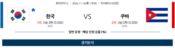 11월 14일 프리미어12 대한민국 쿠바 해외야구분석 스포츠분석