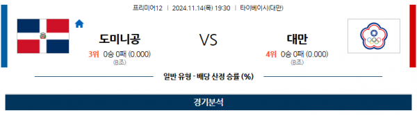 11월 14일 프리미어12 도미니카공화국 대만 해외야구분석 스포츠분석
