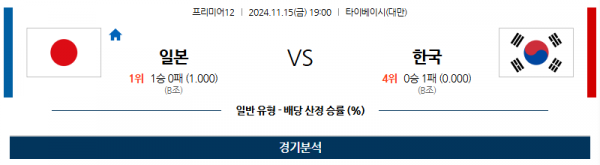 11월 15일 프리미어12 일본 대한민국 해외야구분석 스포츠분석