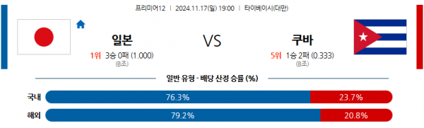 11월 17일 프리미어12 일본 쿠바 해외야구분석 스포츠분석
