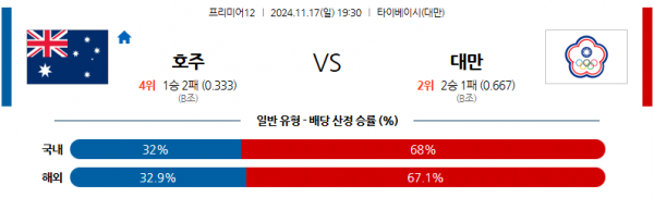 11월 17일 프리미어12 호주 대만 해외야구분석 스포츠분석