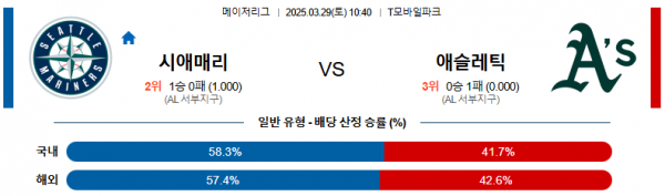 3월 29일 MLB 시애매리 vs 애슬레틱