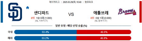 3월 29일 MLB 샌디파드 vs 애틀브레
