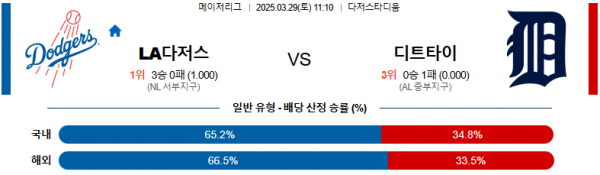 3월 29일 MLB LA다저스 vs 디트타이