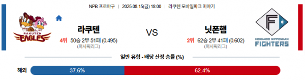 8월 15일 NPB 라쿠텐 vs 닛폰햄