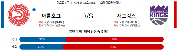2024 11월 02일 애틀랜타 호크스 새크라멘토 【 NBA 】분석