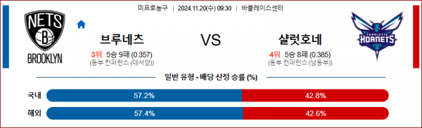 11월 20일 NBA 브루클린 샬럿 미국프로농구분석 스포츠분석