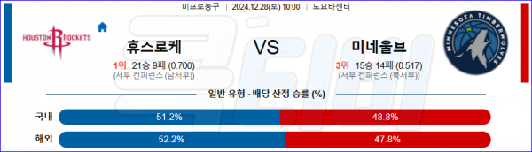 2024 12월 28일 휴스턴 로키츠 미네소타 팀버울브스 NBA 분석