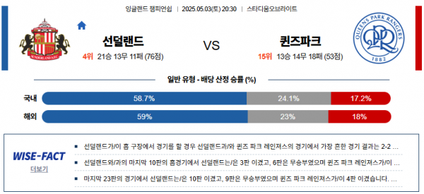특히 QPR은 전환 속도가 느려지는 문제가 반복되고 있어, 선더랜드가 빠른 박스 침투와 2선 지원을 통해 위협적인 공격 패턴을 지속적으로 만들어낼 수 있다.