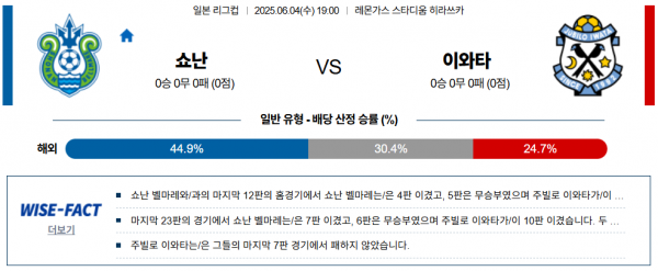 득점 흐름이 살아 있는 홈팀 쇼난의 승리를 강하게 지지한다.