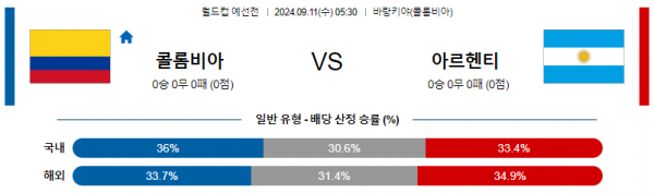 9월11일 월드컵 예선전 콜롬비아 아르헨티나 해외축구분석 스포츠분석