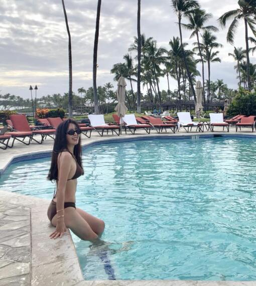 공개된 사진 속 김주희는 이국적인 풍경이 펼쳐진 수영장을 배경으로 갈색 비키니와 화이트 커버업 드레스, 세련된 선글라스를 매치해 감각적인 비치웨어를 선보였다.
